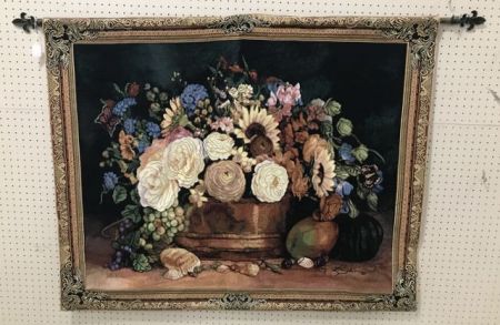 Modern Decorative Hanging Wall Tapestry, bouquet of flowers, with hanging rod, 43"h., 53"w. Modern Decorative Hanging Wall Tapestry, bouquet of flowers, with hanging rod, 43"h., 53"w.