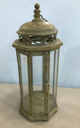 Modern Rustic Style Hanging Candle Light Fixture, glass panels, single door, 25"h Modern Rustic Style Hanging Candle Light Fixture, glass panels, single door, 25"h