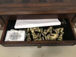Modern Cherry Chess, Chinese Checkers, Checkers, and Backgammon Set, with all pieces, needs cleaning, 5"h., 18"w. Modern Cherry Chess, Chinese Checkers, Checkers, and Backgammon Set, with all pieces, needs cleaning, 5"h., 18"w.