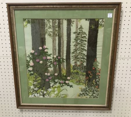 Framed Landscape Needle Point, framed, glassed, 29"h., 26"w. Framed Landscape Needle Point, framed, glassed, 29"h., 26"w.