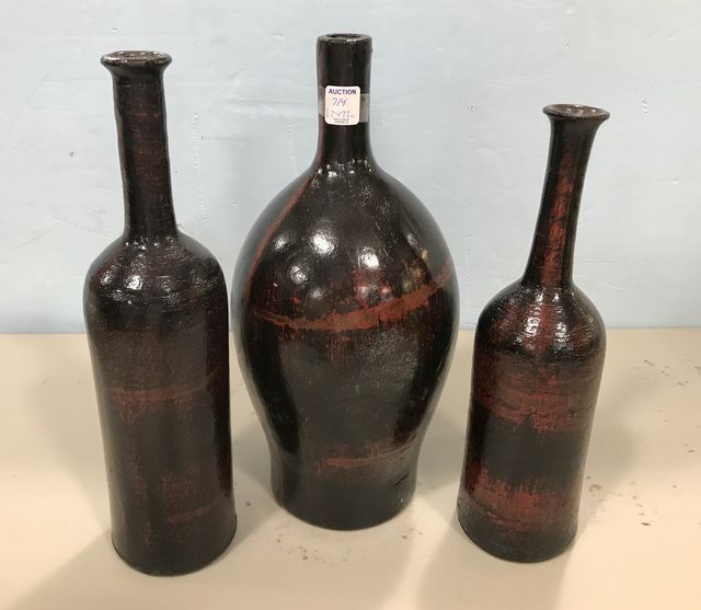 Three Modern Primitive Style Decorative Jars, glazed, 15"h. Three Modern Primitive Style Decorative Jars, glazed, 15"h.