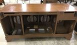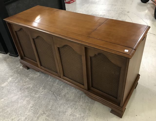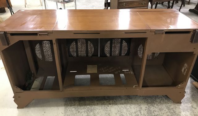 Large Cherry Radio Cabinet, just cabinet, empty, lift tops, sliding front doors, 30"h., 62"w., 22"d. Large Cherry Radio Cabinet, just cabinet, empty, lift tops, sliding front doors, 30"h., 62"w., 22"d.