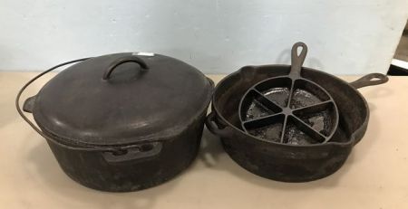Vintage Iron Pans and Corn Bread Pan, numbered, used condition. Vintage Iron Pans and Corn Bread Pan, numbered, used condition.