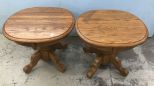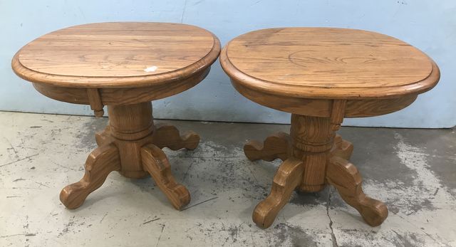 Pair of Eller Vintage Oak Reproductions Lamp Tables, pedestal table with round top, 21"h., 25"w. Pair of Eller Vintage Oak Reproductions Lamp Tables, pedestal table with round top, 21"h., 25"w.