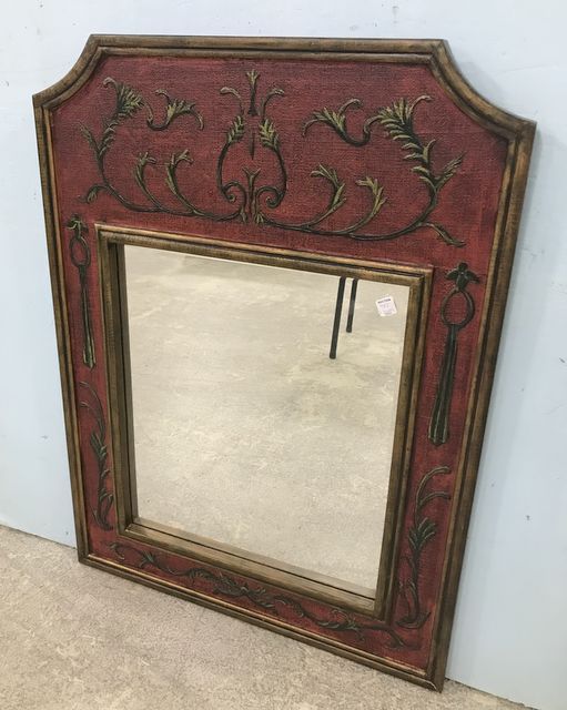 Reproduction French Style Wall Mirror, red factory painted, good condition, 40"h., 29"w. Reproduction French Style Wall Mirror, red factory painted, good condition, 40"h., 29"w.