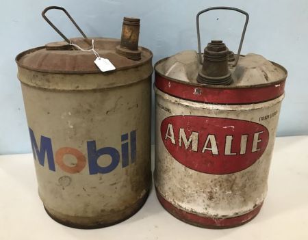 799 Two Vintage Mobile and Amalie 5 Gallon Gas Jugs