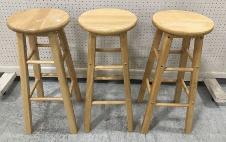 Three Pine Round Top Bar Stools, 30"h., 13"w. Three Pine Round Top Bar Stools, 30"h., 13"w.