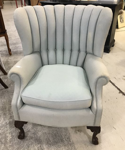 Ball-n-Claw Upholstered Arm Chair, tufted back, was exposed to mildew, 39"h. Ball-n-Claw Upholstered Arm Chair, tufted back, was exposed to mildew, 39"h.