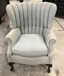 Ball-n-Claw Upholstered Arm Chair, tufted back, was exposed to mildew, 39"h. Ball-n-Claw Upholstered Arm Chair, tufted back, was exposed to mildew, 39"h.