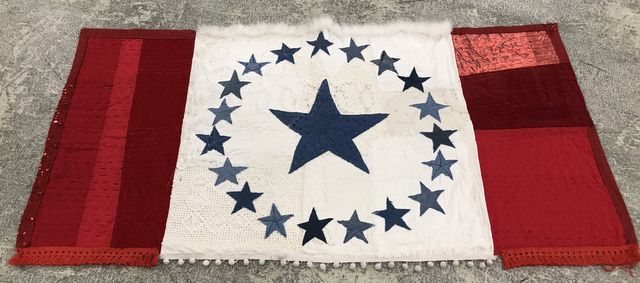 Stennis Flag Woven Quilt, good condition, 64"w., 30"h. Stennis Flag Woven Quilt, good condition, 64"w., 30"h.