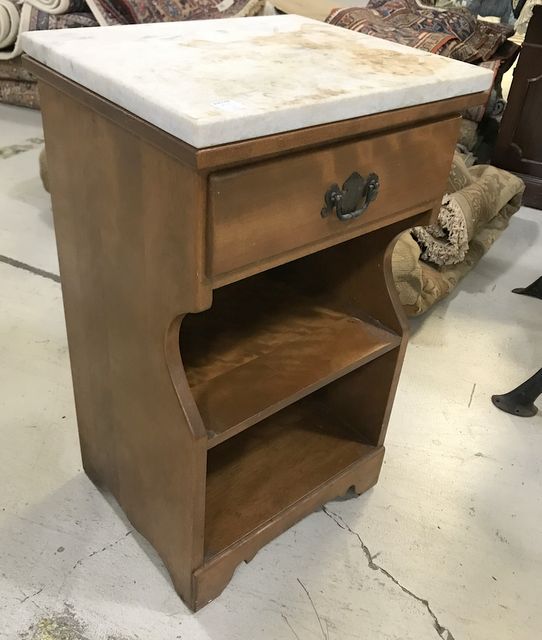 Ethan Allen by Baumritter Night Stand, with added marble top, has wear, exposed to mildew, 29"h. 17"w. Ethan Allen by Baumritter Night Stand, with added marble top, has wear, exposed to mildew, 29"h. 17"w.