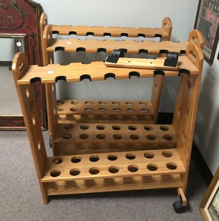 Three Fishing Rod Storage Stands, two are good, one needs base repair. Three Fishing Rod Storage Stands, two are good, one needs base repair.