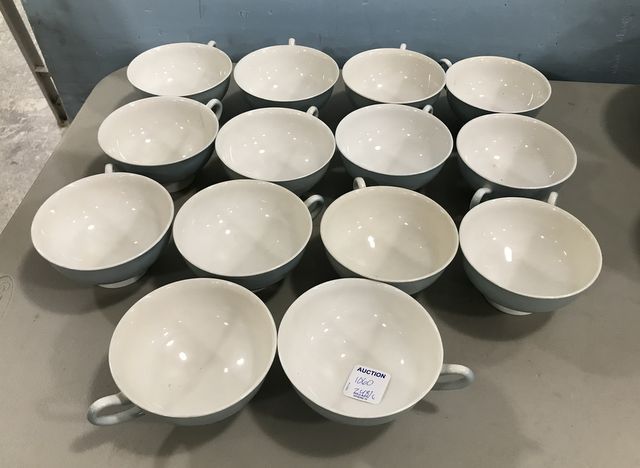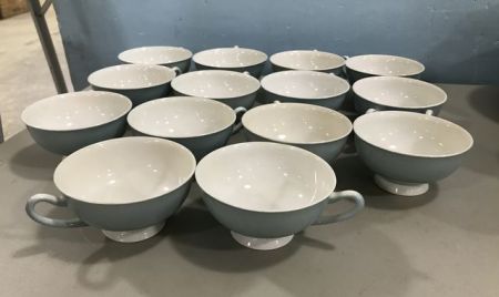 14 porcelain cups, turquoise, unmarked. 14 porcelain cups, turquoise, unmarked.