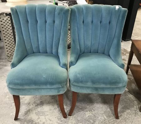 Pair of Blue Tufted Side Chairs, needs cleaning, exposed to mildew, 36"h. Pair of Blue Tufted Side Chairs, needs cleaning, exposed to mildew, 36"h.