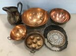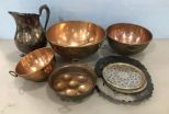 1096 Round Brass Bowls, Silver Plate Pitcher, Trivet Stands