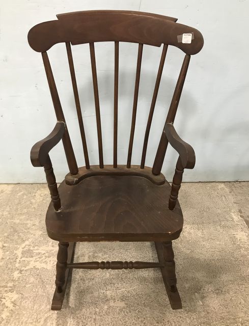 Small Child's Oak Spindle Back Rocker, 30"h. Small Child's Oak Spindle Back Rocker, 30"h.