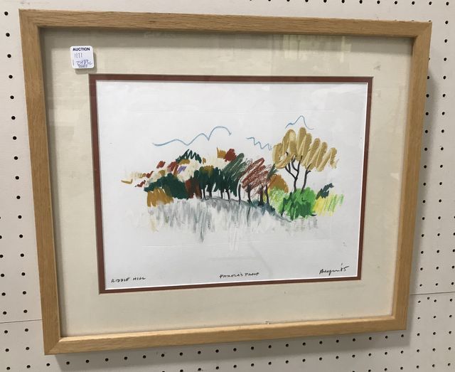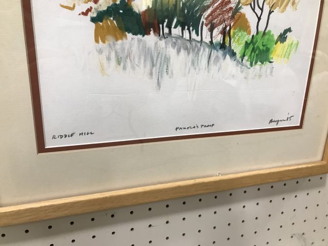 Landscape Painting "Riddle Hill" Pamela's Proof, signed, matted, framed, 17"h., 19"w. Landscape Painting "Riddle Hill" Pamela's Proof, signed, matted, framed, 17"h., 19"w.