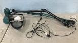 Two Metal Attractable Desk Lamps, black, gray, one has mount. Two Metal Attractable Desk Lamps, black, gray, one has mount.