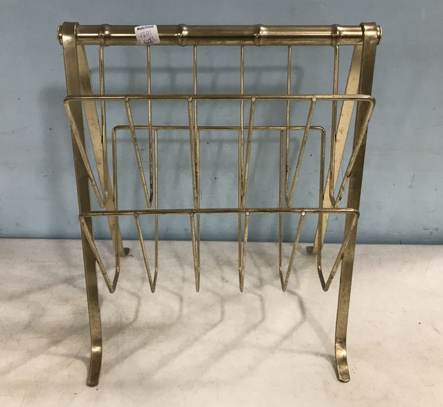 Vintage Brass Magazine Rack, wire style, 18"h., 15"w. Vintage Brass Magazine Rack, wire style, 18"h., 15"w.
