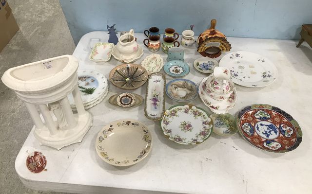 Group of Pottery Plates, turkey decor, hand painted plates, creamer, imari style plate, Relpo pottery, animal figurines, trays Group of Pottery Plates, turkey decor, hand painted plates, creamer, imari style plate, Relpo pottery, animal figurines, trays