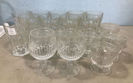 Two Crystal Brandy Stems, ice tea glasses, sherbets, pressed glassed, clear glass, used condition. Two Crystal Brandy Stems, ice tea glasses, sherbets, pressed glassed, clear glass, used condition.