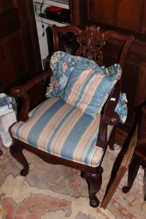 104 Pair of Mahogany French Queen Anne Arm Chairs