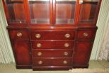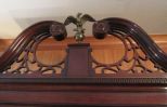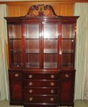 Four door, beveled glass, crest with bird finial, 89"h., 60"w., 18"d. Four door, beveled glass, crest with bird finial, 89"h., 60"w., 18"d.