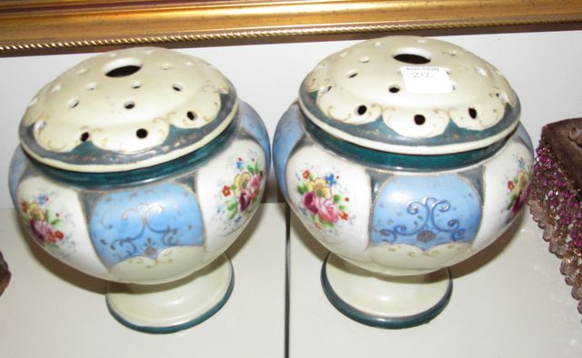 212 Pair of Kinjo Nippon Hand Painted Potpourri Jar