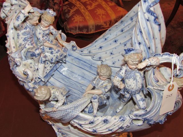 245 Dresden Style Porcelain Boat with Family Scene