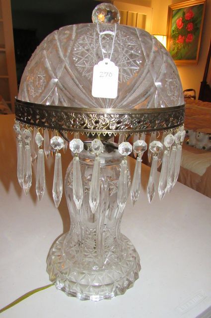 Glass covered top, brass rim, prism, made from multiple press glass pieces. Has small chip, 20"h. Glass covered top, brass rim, prism, made from multiple press glass pieces. Has small chip, 20"h.