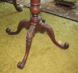 Carved pedestal four leg base, glass top, 26"h. Carved pedestal four leg base, glass top, 26"h.