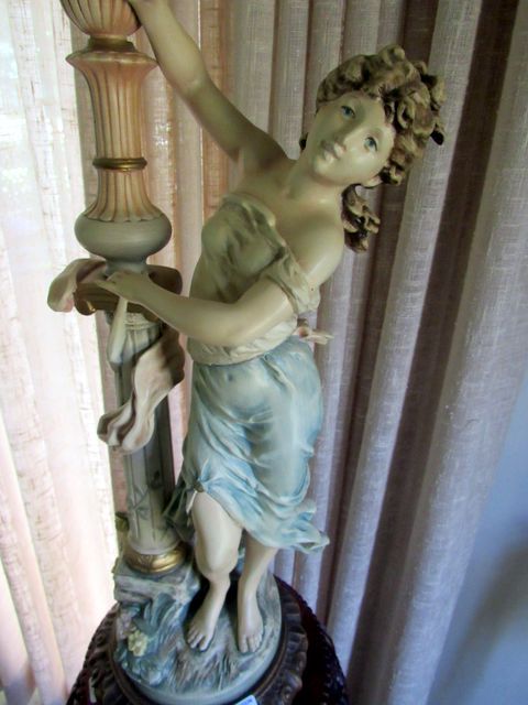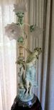 Glass shades, hand painted on brass, 36"h. Glass shades, hand painted on brass, 36"h.