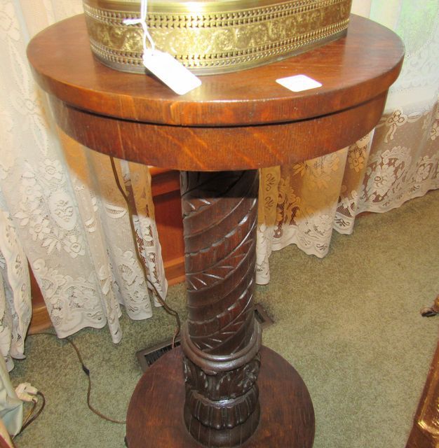 Carved floral design on pedestal, 31"h. Carved floral design on pedestal, 31"h.