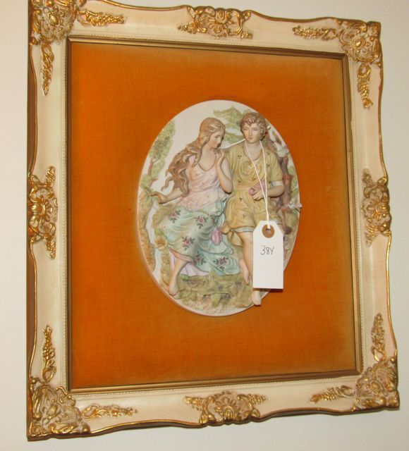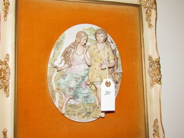 384 Framed Victorian Style Bisque Porcelain 3D Wall Plaque