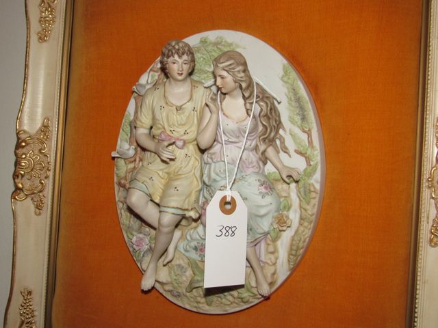 388 Framed Victorian Style Bisque Porcelain 3D Wall Plaque