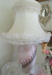 38"h., Jar turned into lamp, fabric shade. 38"h., Jar turned into lamp, fabric shade.