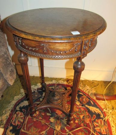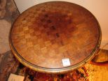 Pattie's furniture, checked top, 27"h., 18"dia. Pattie's furniture, checked top, 27"h., 18"dia.
