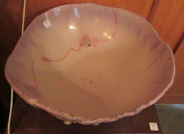 Glazed, unique shape and design, 8"h., 18"dia. Glazed, unique shape and design, 8"h., 18"dia.