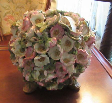 Some small chips on petals. Flower designs, 9"h. Some small chips on petals. Flower designs, 9"h.