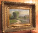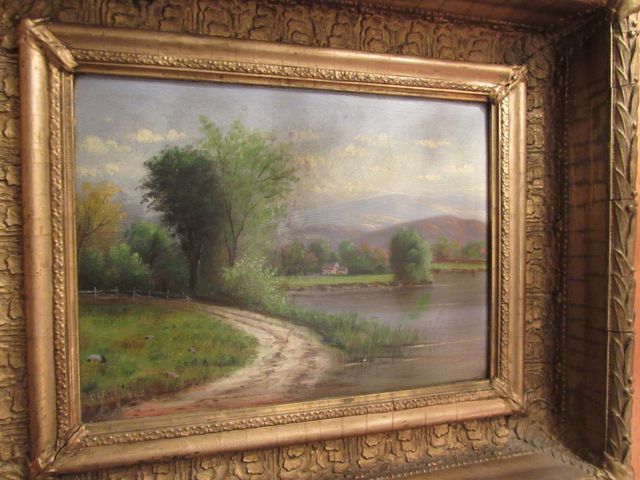 Signed DA. Fisher, born 1867, died 1940, Portland, Maine, Landscape painter, Antique gold frame, age cracks, 15" x 18" Signed DA. Fisher, born 1867, died 1940, Portland, Maine, Landscape painter, Antique gold frame, age cracks, 15" x 18"
