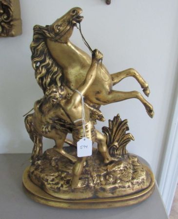 Horse and Man, gold painted, 17"h., 13"w. Horse and Man, gold painted, 17"h., 13"w.