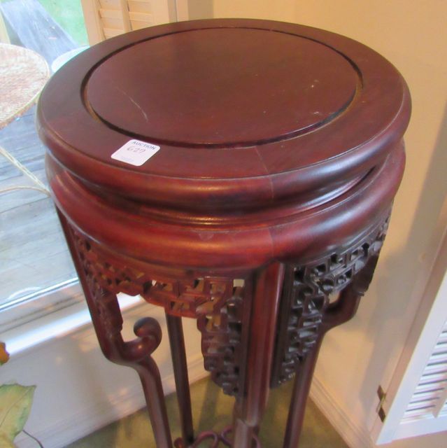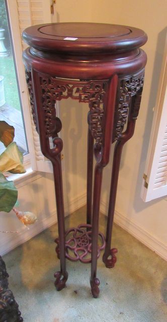 Carved section between legs, ornate bottom stretcher, 43"h., 13"dia. Carved section between legs, ornate bottom stretcher, 43"h., 13"dia.