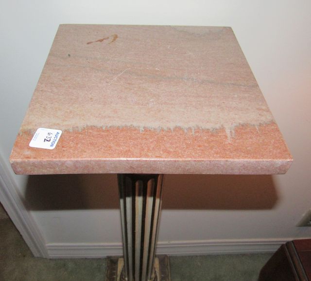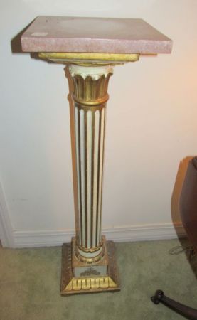 Marble top, white and gold painted, 38"h. Marble top, white and gold painted, 38"h.