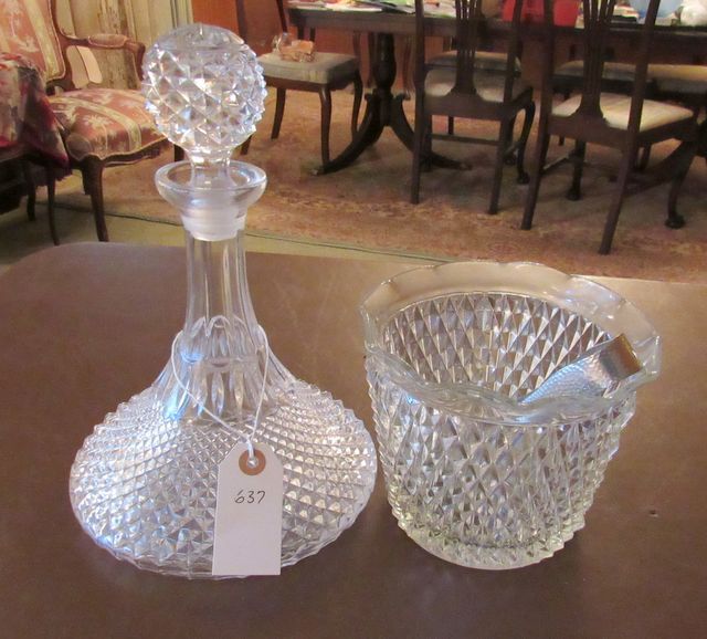 Decanter 11"h., bucket 5"h., 6"w. Decanter 11"h., bucket 5"h., 6"w.