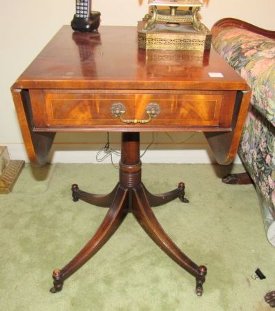 Pedestal, inlaid wood trim, one drawer, 27"h., 22"d. Pedestal, inlaid wood trim, one drawer, 27"h., 22"d.