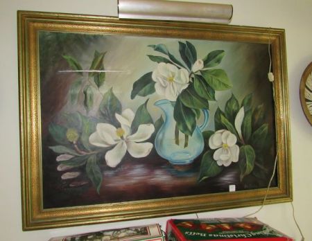 Magnolias, piece is damaged. 28"h., 40"w. Magnolias, piece is damaged. 28"h., 40"w.