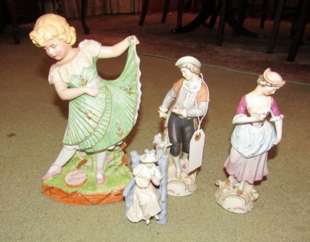 Ucagco figurines 10"h., Ceramic Dancing Girl 12"h., Ceramic lady in chair. Ucagco figurines 10"h., Ceramic Dancing Girl 12"h., Ceramic lady in chair.