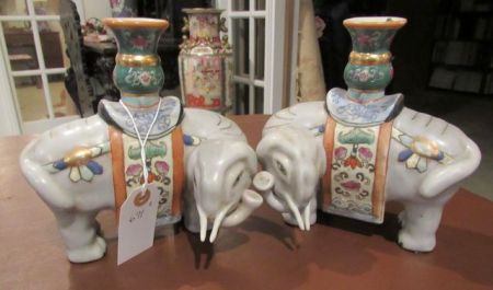 671 Pair of Asian Style Porcelain Elephant Candle holders