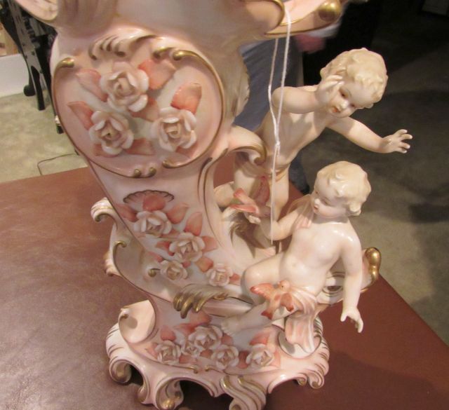 gold trim, rose flower design, 15"h. gold trim, rose flower design, 15"h.