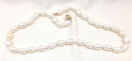 14K freshwater irregular pearls; 16" l. 14K freshwater irregular pearls; 16" l.